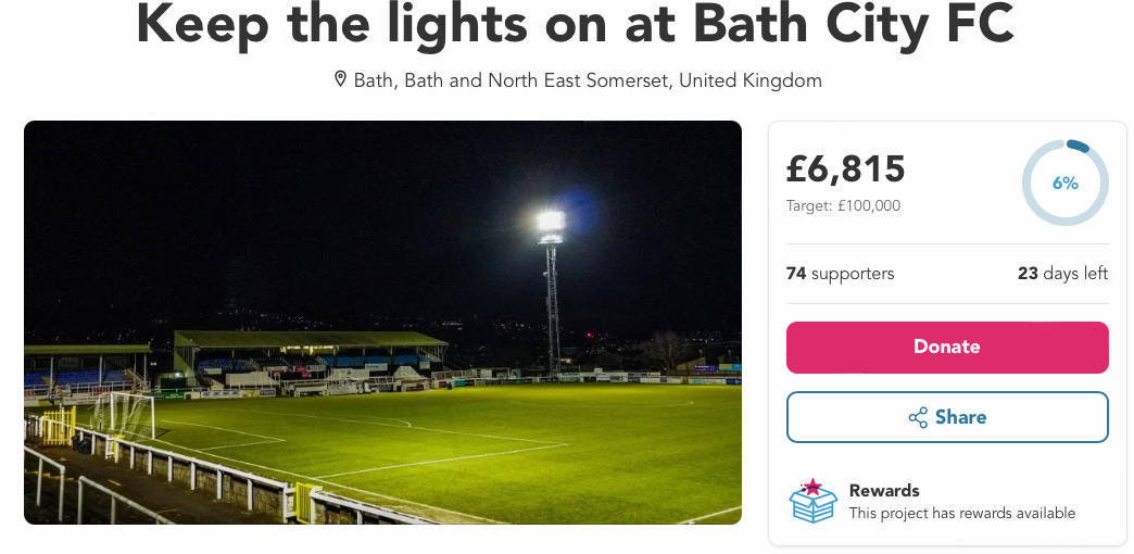 ⚽️ UPDATE: Come on Bath! Let’s help Bath City FC get closer to their goal to keep the lights on at the side’s Twerton Stadium. Donate here.