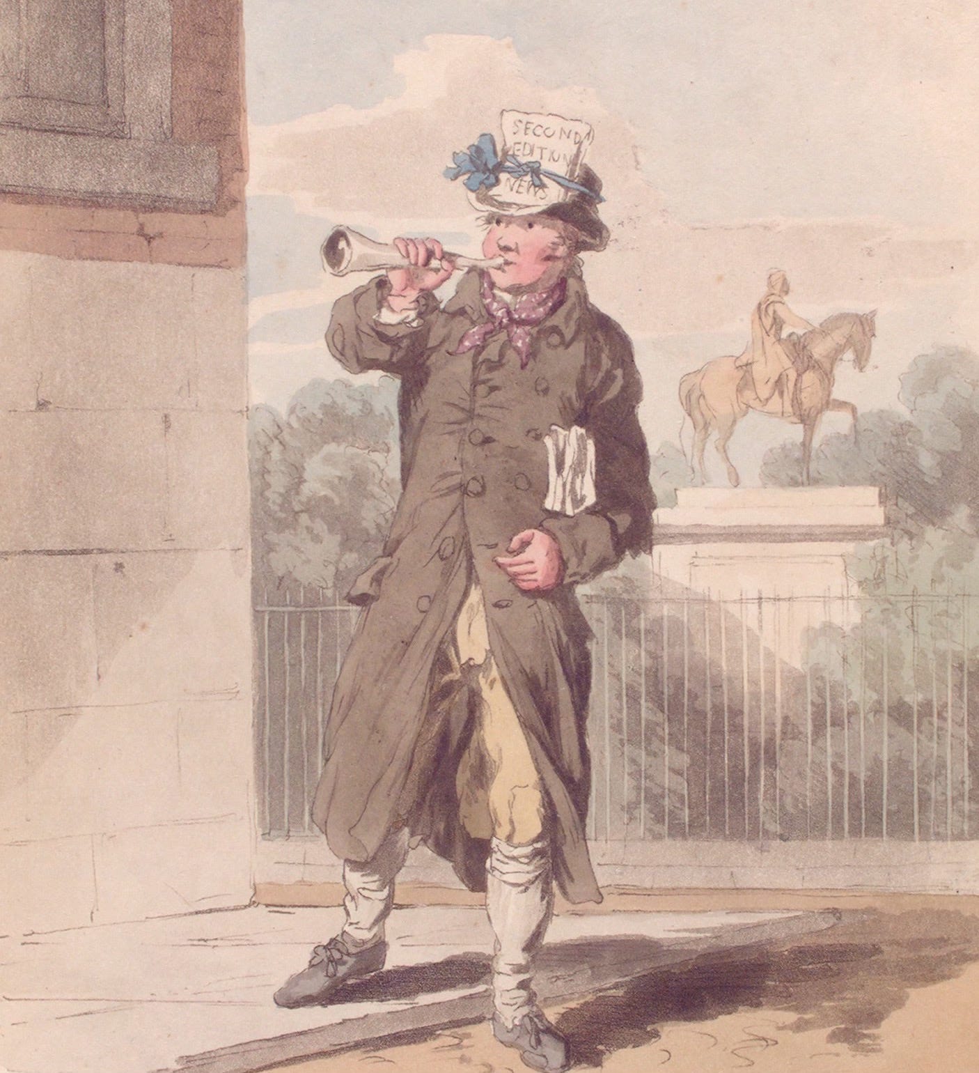 The Newsman, or Hawker, pictured above, walked for miles across Somerset, Wiltshire and Gloucestershire, selling newspapers. He also peddled books, ‘medicines’ like “Dr Hooper’s Female Pills,” carried parcels and solicited new advertising and subscriptions.